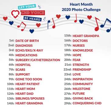Heart Month 2020 Pediatric Congenital Heart Association Colorado Heart Month 2020 Photo Challenge 1st: Date of Birth – July 21, 2017 2nd: Diagnosis Share this: Click to share on X (Opens in new window) X Click to share on Facebook (Opens in new window) Facebook Like Loading...